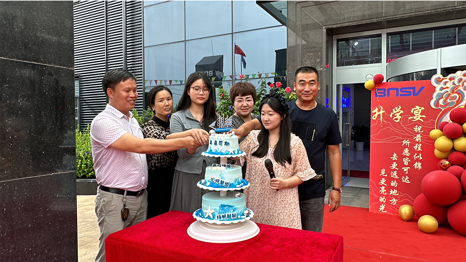 王總代表博納斯威董事會(huì)及全體員工向三位同學(xué)及洪炳達(dá)、裴娟娟、單朦三位同事表示最衷心的祝賀。王總提到:“博納斯威作為以一家追求全體員工物質(zhì)和精神雙幸福為使命的企業(yè),始終堅(jiān)信企業(yè)的基本價(jià)值是讓員工幸福。為員工謀幸福,是博納斯威最重要的使命。今天,我們隆重舉行博納斯威第一屆升學(xué)宴,就是踐行我們的誓言和承諾。”