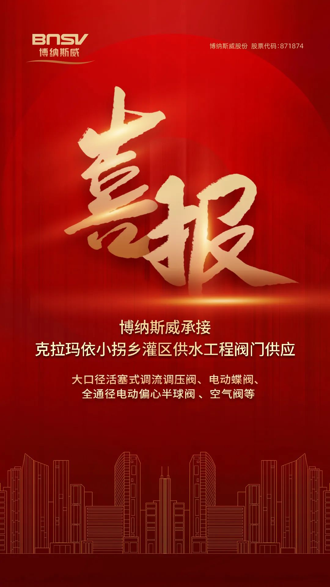 喜報!博納斯威承接克拉瑪依小拐鄉灌區供水工程閥門供應
