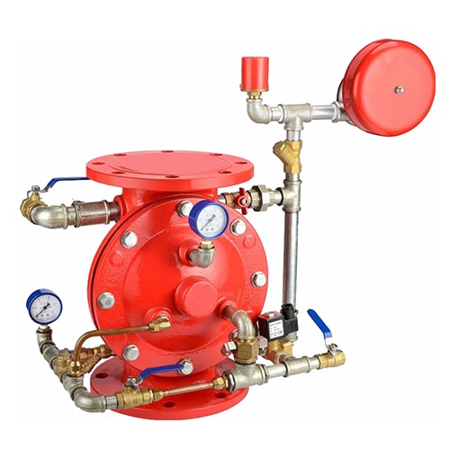 ● 當(dāng)探測噴頭動作后,雨淋報警閥的監(jiān)控室壓力就會急劇下降,使雨淋報警閥自動打開進(jìn)行噴水滅火,并報警。